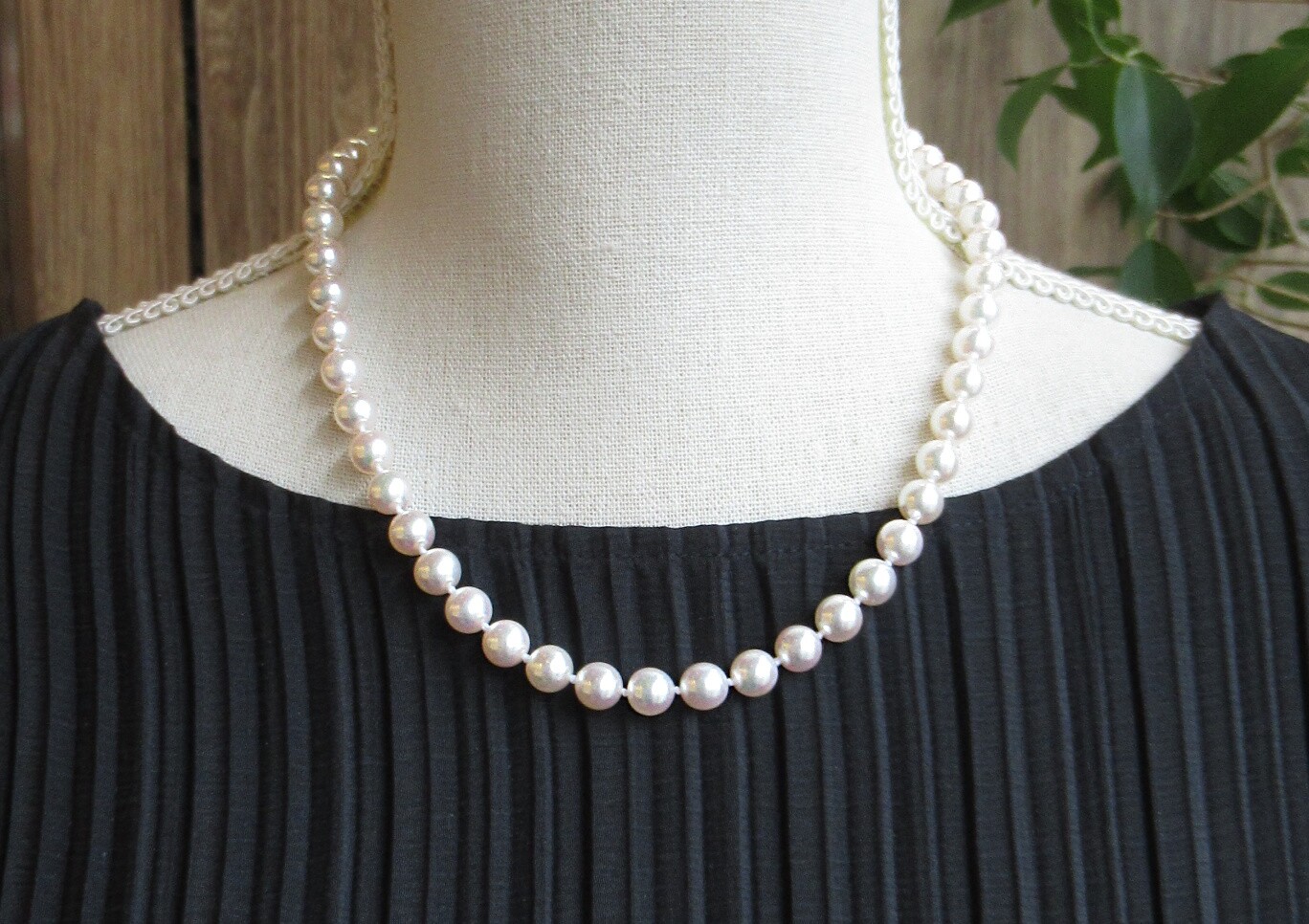 真珠が連なったネックレスは、3年に一度は糸替えをオススメします。