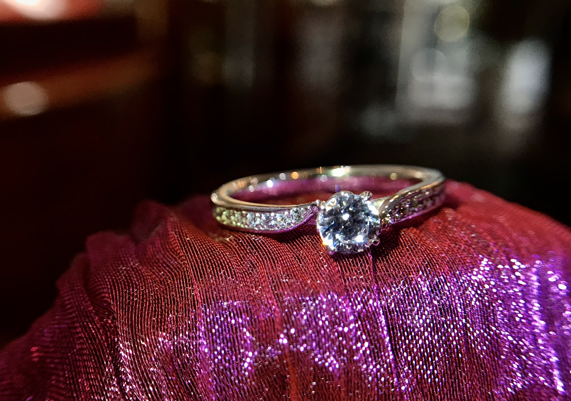 屋外よりも暗い場所のほうがディスパレーション(光分散による7色の輝き)が見えやすい。